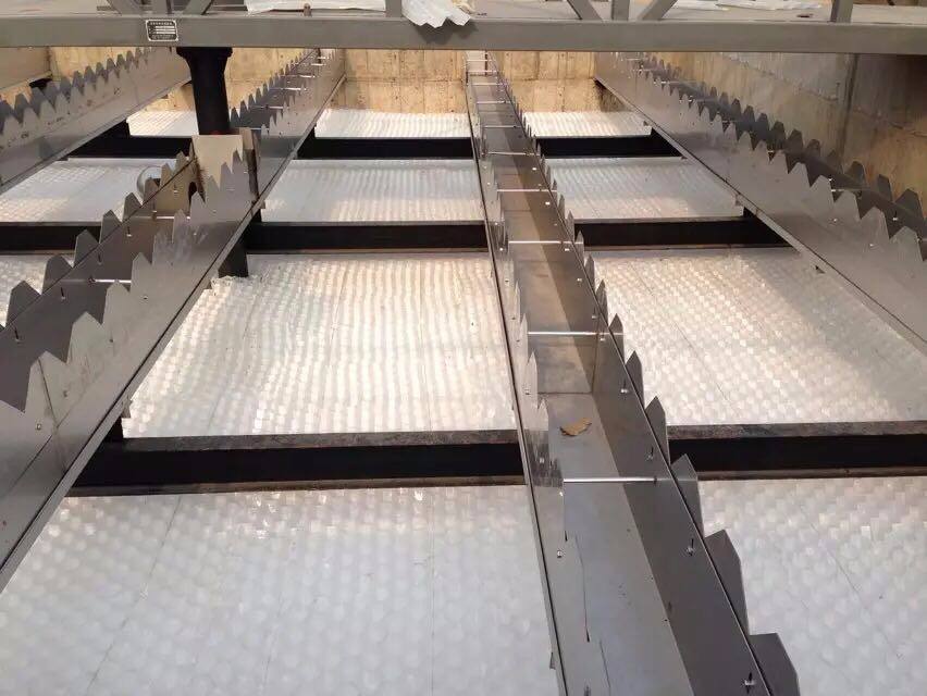 傾斜角度調(diào)整為0、5、20、35、40、45、60和90度。保持液壓平衡,合理規(guī)劃處理負載的斜管或斜板可以改善外部負載率到100-200%的情況下保證污水質(zhì)量,結(jié)果表明,傾斜45-60度時沉積能力最高,沉積顆粒的“自凈”效果較強。但在寒冷地區(qū),斜管的最大外部負載率應(yīng)控制在5-6.3m/h,和溫暖的熱帶地區(qū)不應(yīng)超過7.5--8.8m/h的規(guī)模。